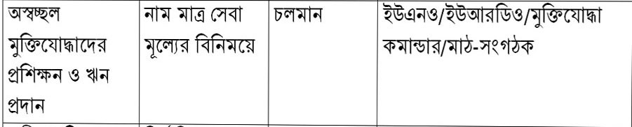 | ২ | অস্বচ্ছল মুক্তিযোদ্ধাদের প্রশিক্ষন ও ঋন প্রদান | দেখুন | |